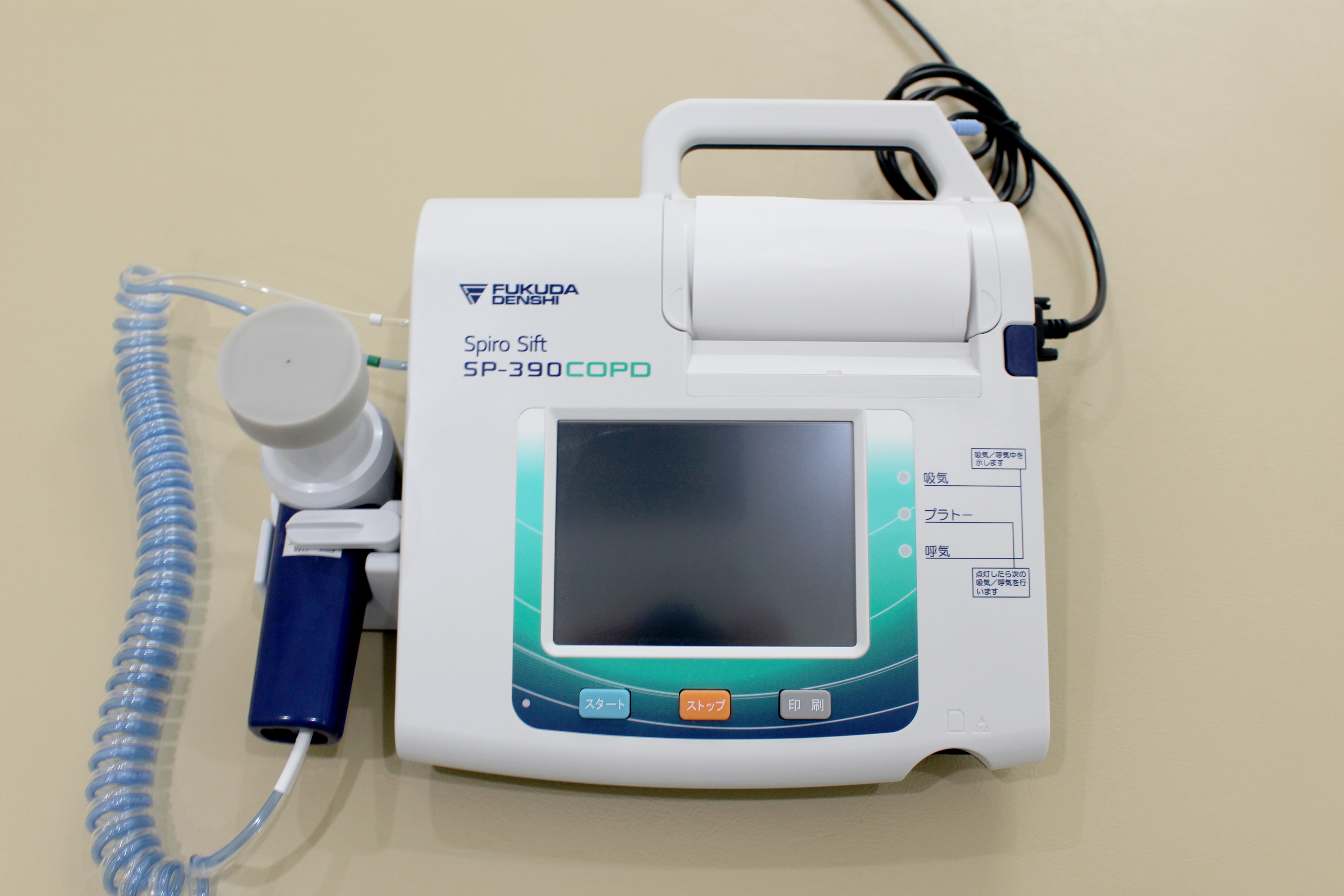 肺年齢を測定すると共に慢性閉塞性肺疾患 (COPO)、喘息、間質性肺炎などの呼吸器疾患の診断が治療効果の判定に役立ちます。