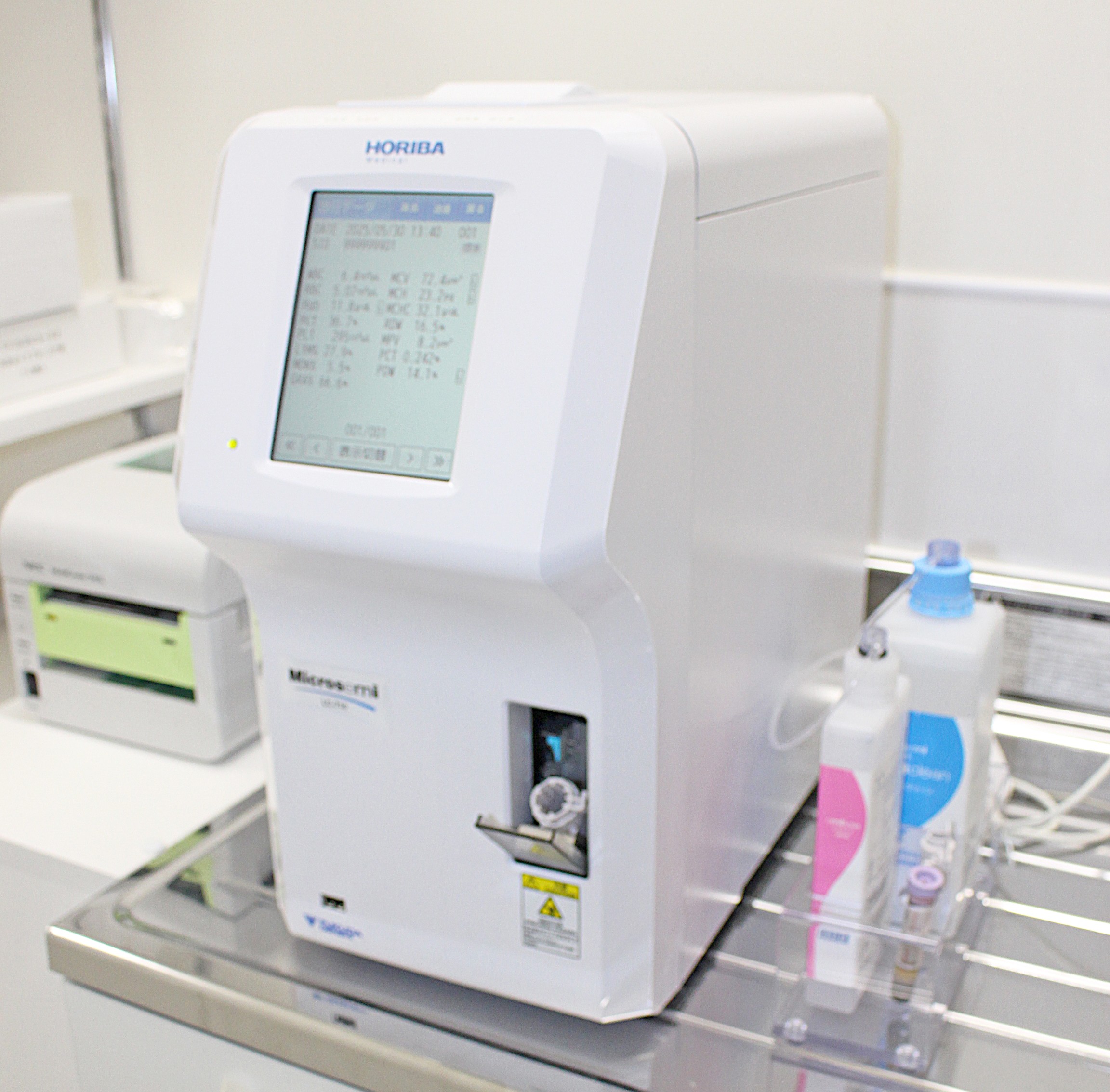 白血球・赤血球・ヘマトクリット・血色素・血小板の数値を測定し、感染や炎症の有無、貧血、多血症、出血傾向が測定できます。検査後1分ほどで結果がわかります。