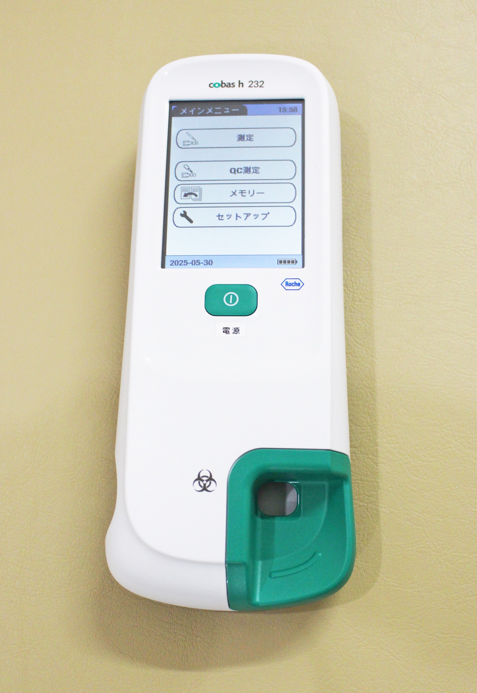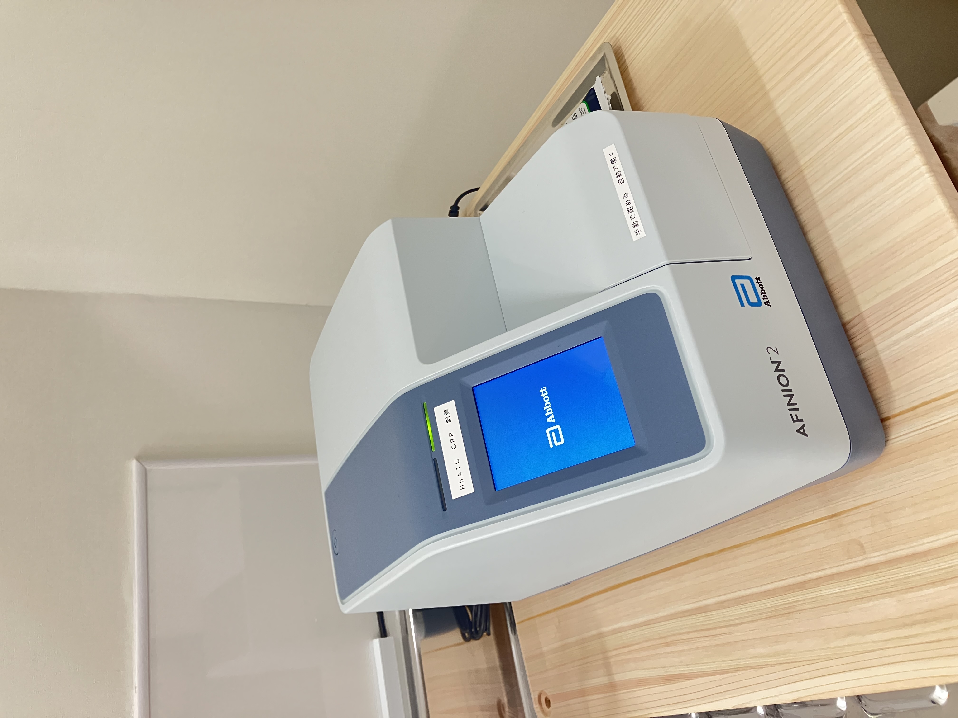 HbA1C、CRP、脂質(総コレステロール、善玉コレステロール、悪玉コレステロール、中性脂肪)、ACRなどの測定が可能です。生活習慣病や脂質異常症、慢性腎臓病、動脈硬化のリスクなどを検査します。検査後3~7分ほどで結果が分かります。